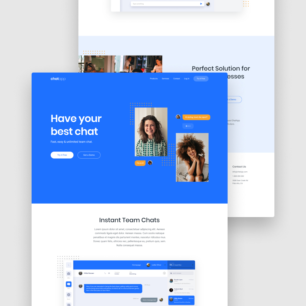 This is a homepage design and build for a concept project – a chat application. I designed the page first then built a responsive web page using Webflow.